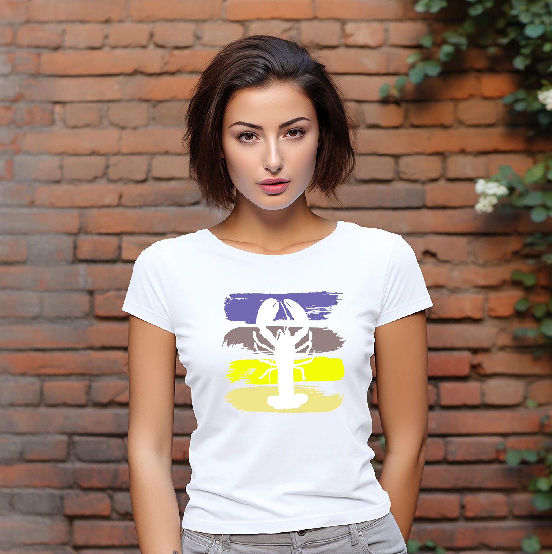Dieses Damen T-Shirt aus 100 % Baumwolle kombiniert hohen Tragekomfort, hochwertige Verarbeitung und ein kreatives Design. Der auffällige Hummer-Print auf einem farbenfrohen, in Pinselstrichen gestalteten Hintergrund ist ein echter Eyecatcher. Mit einem leicht taillierten Schnitt und dem Rundhalsausschnitt wirkt das Shirt modern und sommerlich zugleich. Ob zur Jeans, Shorts oder zum Rock – dieses Baumwollshirt für Damen ist ein echter Blickfang für Alltag, Urlaub und Freizeit.
